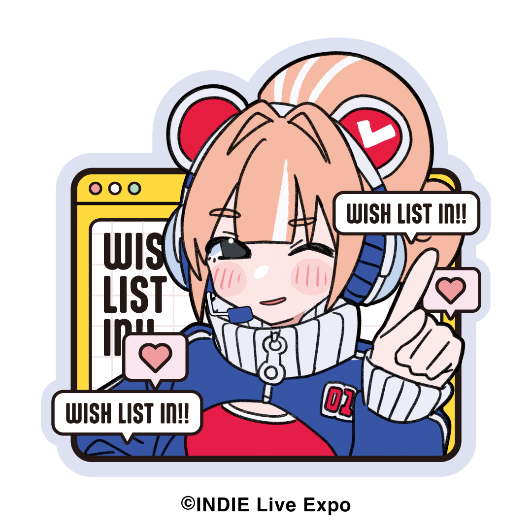 ご来場特典のノベルティとして、オリジナルステッカーを配布いたします。ゲームファンにとって便利で、開発者にとって嬉しい「ウィッシュリスト登録」を、INDIE Live Expo イメージキャラクターの「ウィッシュリストアド美ちゃん」がポップに促すデザインです。